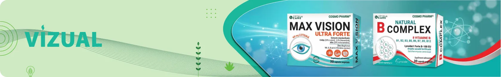 Ingrediente precum vitamina A, luteina, zeaxantina, zincul și vitamina C susțin funcția vizuală, protejează împotriva stresului oxidativ și ajută la menținerea acuității vizuale.