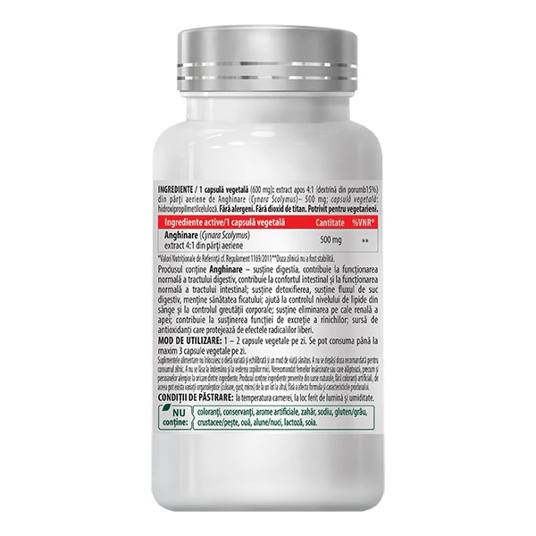 - Detoxifiere: Anghinare Extract 500 mg sustine functia detoxifianta a ficatului si protejeaza celulele hepatice impotriva radicalilor liberi.