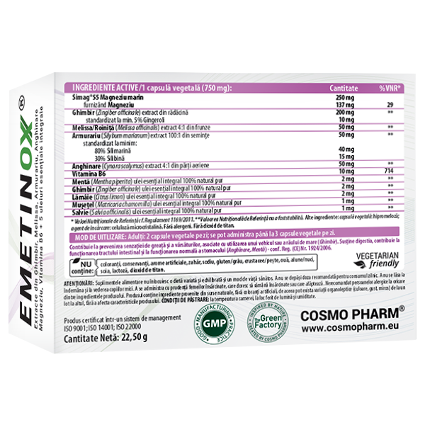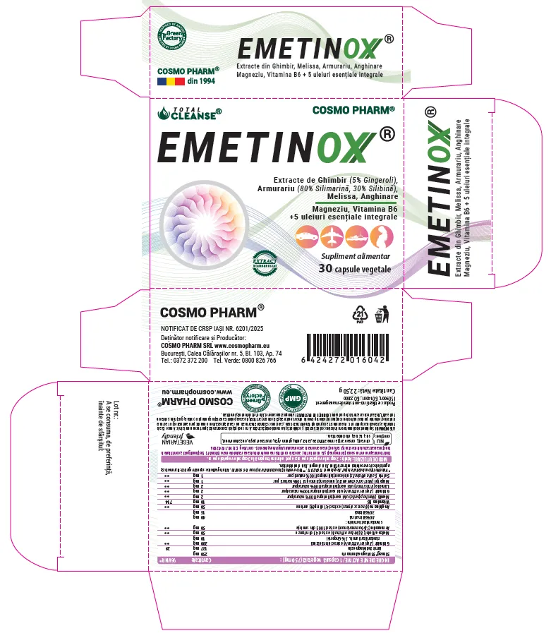 EMETINOX® este un supliment natural de la COSMO PHARM®, creat pentru a reduce greata, varsaturile si disconfortul gastric.