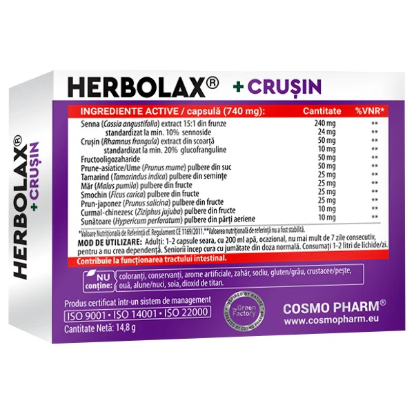 - HERBOLAX®+ Crușin faciliteaza tranzitul intestinal in cazul constipatiei cronice;