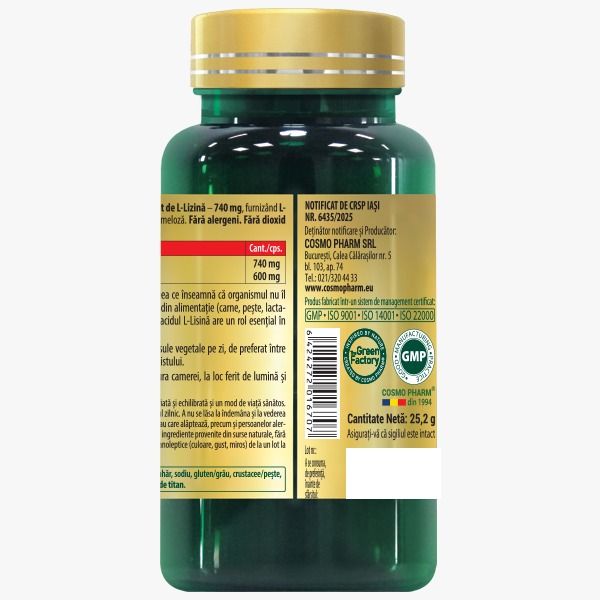 De ce să alegi L-LYSINE 600 mg de la COSMO PHARM®