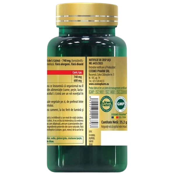De ce să alegi L-LYSINE 600 mg de la COSMO PHARM®