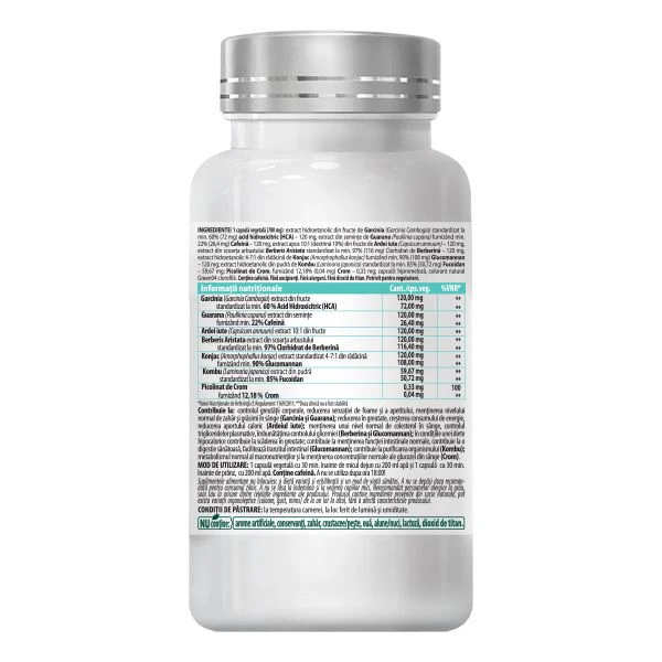Berberina si Picolinatul de Crom susțin metabolismul si mențin nivelurile de zahar din sange in limite normale.