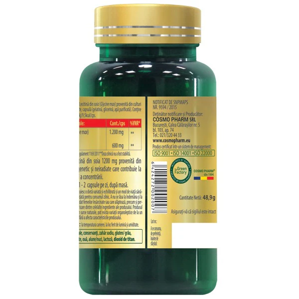 - Lecitina 1200 mg contribuie la scaderea colesterolului si trigliceridelor;