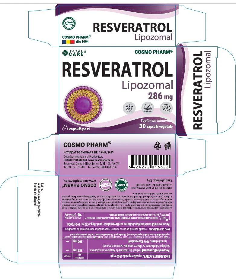 | Resveratrol Lipozomal (extract din radacina de Polygonum cuspidatum, fosfolipide din lecitina de Floarea-soarelui – Helianthus annuus) | 285,72 mg |