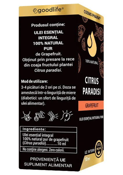 CITRUS PARADISI – 10 ML ULEI ESENTIAL DE GRAPEFRUIT, PUR, PRESAT LA RECE, PENTRU UZ INTERN