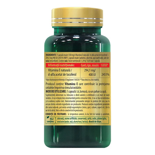Vitamina E este o vitamina liposolubila care se obtine exclusiv prin dieta si aport de suplimente alimentare, dar pe masura ce imbatranim, nivelul vitaminei E scade, iar necesitatea suplimentarii creste odata cu inaintarea in varsta. Mai mult, pentru femeile insarcinate si pentru cele care alapteaza suplimentarea este esentiala unui organism sanatos.